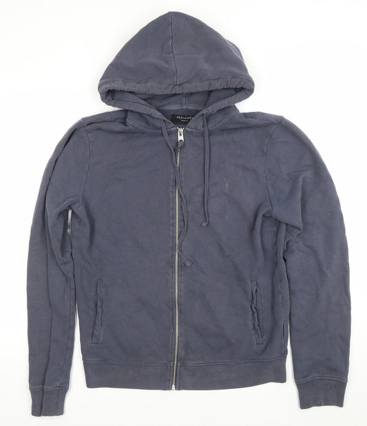 AllSaints Men's Blue Full Zip Hoodie Medium Cotton