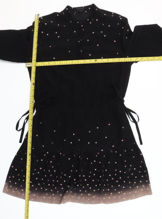 AllSaints Women's Black Silk Star Print Fit & Flare Mini Dress Size 8
