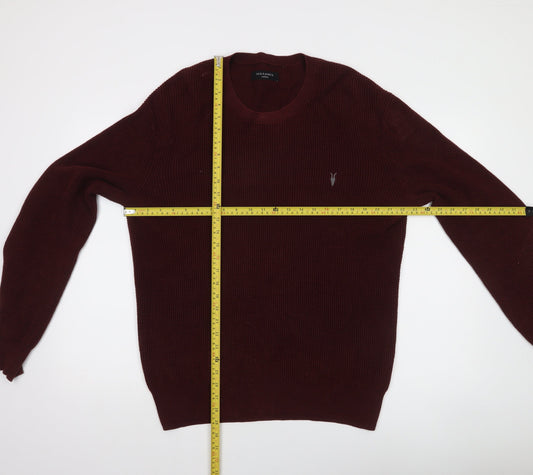 AllSaints Mens Red Cotton Waffle Knit Crew Neck Jumper Medium
