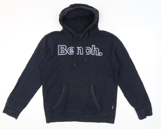 Bench Men's Blue Pullover Hoodie L Logo Fleece Sweatshirt
