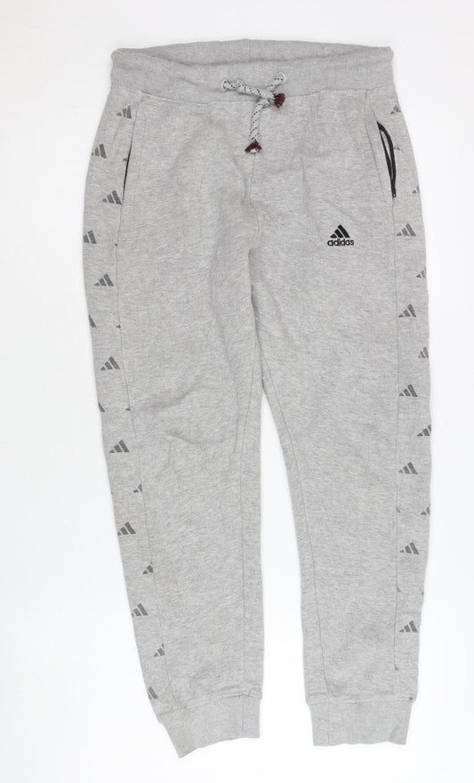 Adidas Boys Grey Jogger Sweatpants 11-12 Years Activewear Cotton Blend