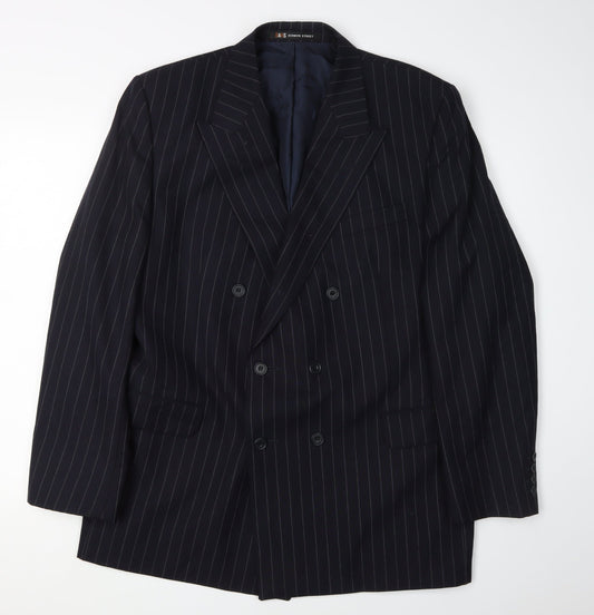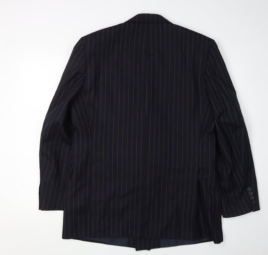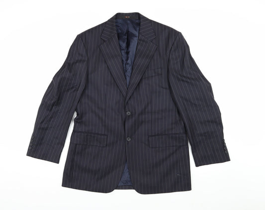 DAKS Men Blue Pinstripe Wool Blazer Jacket 46R Classic Formal