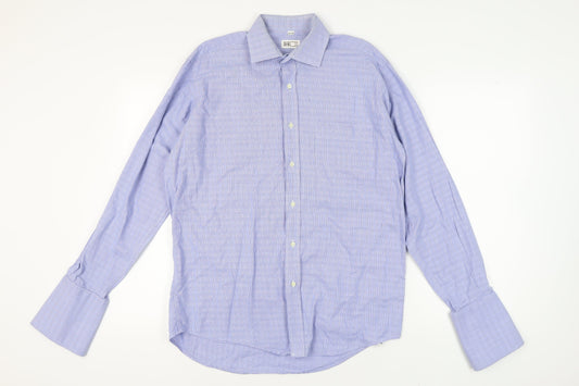 Daks Men's Blue Check Dress Shirt 15.5 Long Sleeve