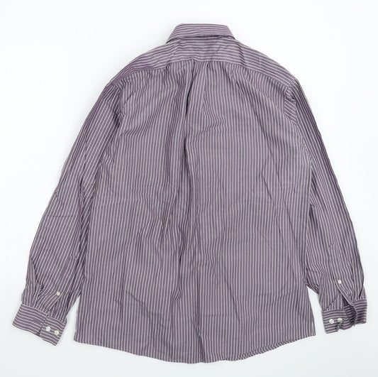 Eddie Bauer Mens Purple Striped Dress Shirt Size M
