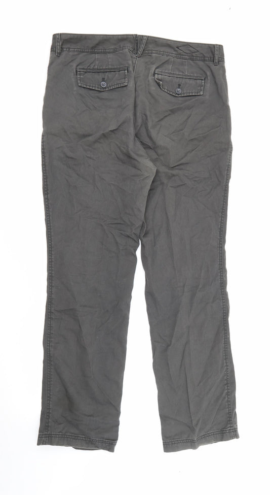Eddie Bauer Womens Grey Cotton Trousers Size 12 L29 in Regular Button