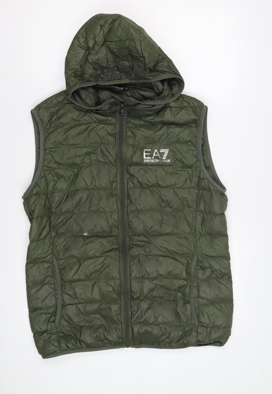Emporio Armani Men's Green Hooded Puffer Waistcoat S