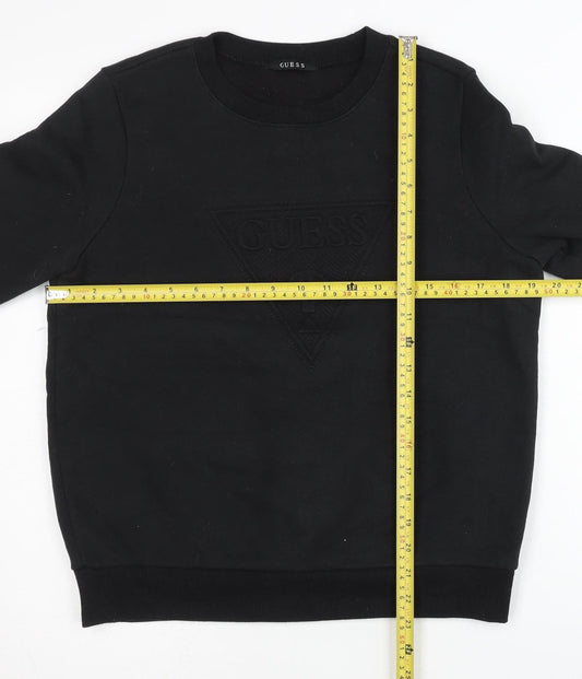 Guess Womens Black XS Pullover Sweatshirt Logo Crew Neck