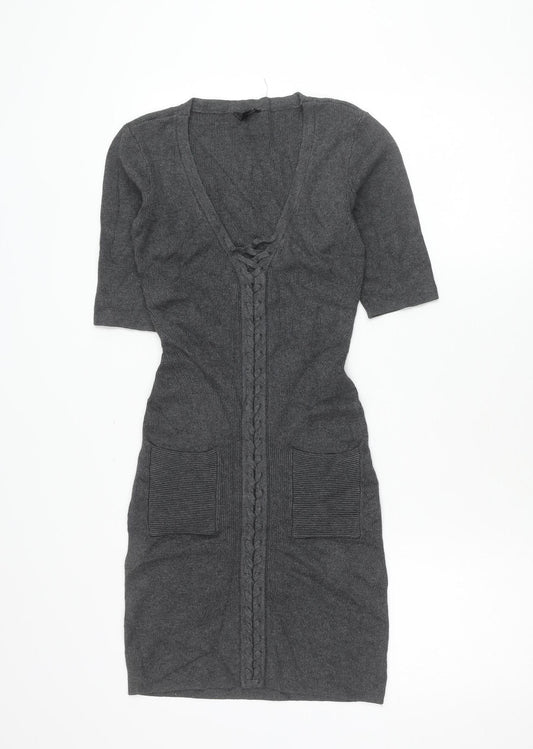 Guess Womens Grey Knit Jumper Dress Size S V-Neck 3/4 Sleeve