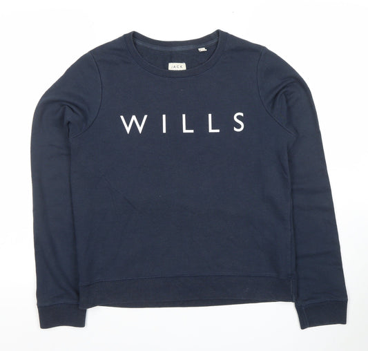 Jack Wills Womens Navy Blue Pullover Sweatshirt UK 12 WILLS Logo Cotton Blend