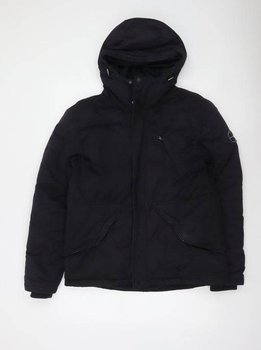 Jack Wills Men's Black Hooded Puffer Jacket Size M Winter Coat