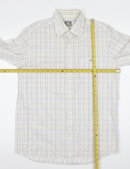 Lacoste Men’s Beige Check Long Sleeve Cotton Button-Up Shirt Size 41