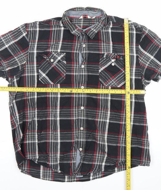 Lee Cooper Men's Black Check Short Sleeve Button-Up Shirt XL