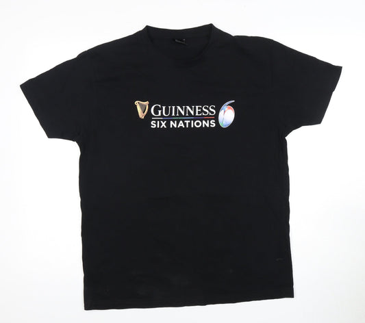Guinness Men's Black Six Nations T-Shirt L - Cotton Crew Neck