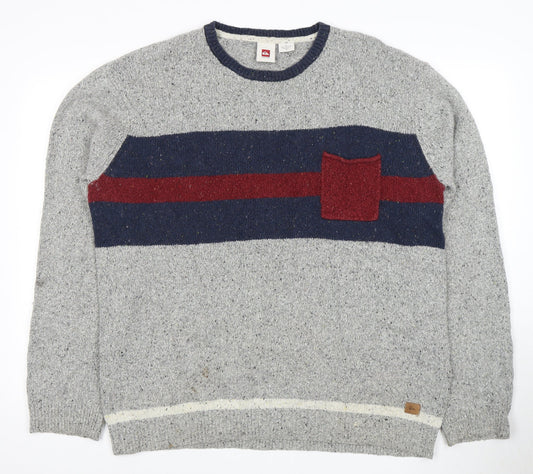 Quiksilver Men's XL Grey Striped Pullover Jumper