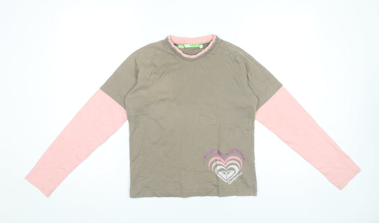 Quiksilver Girls Brown Pink Long Sleeve Logo T-Shirt Size 16 Years