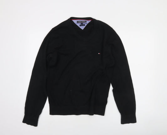 Tommy Hilfiger Men's Black V-Neck Cotton Jumper Size S