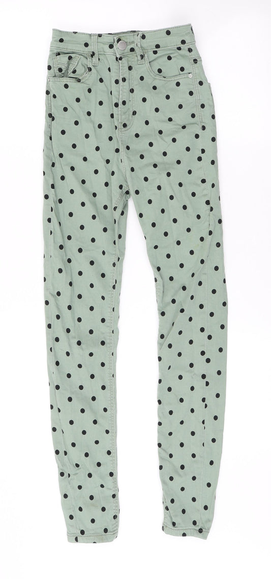 Stradivarius Womens Green Polka Dot Cotton Skinny Jeans Size 4 L26 in Regular Button