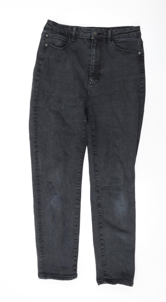 Pull&Bear Womens Grey Cotton Straight Jeans Size 6 L26 in Regular Zip - Raw Hem