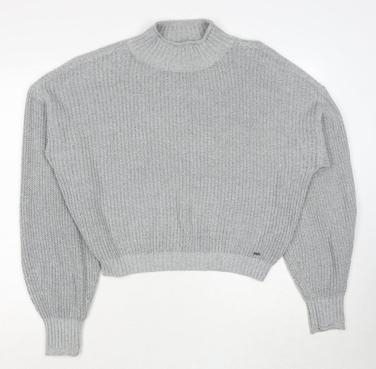 Hollister Womens Grey Mock Neck Cotton Pullover Jumper Size L