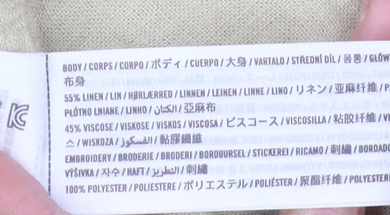 Abercrombie & Fitch Mens Beige 2XL Tall Linen Blend Embroidered Button Shirt
