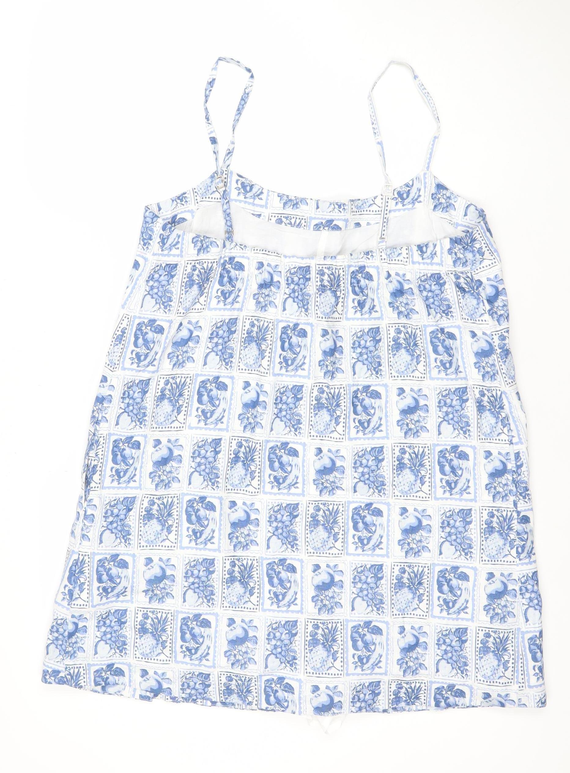 Abercrombie & Fitch Women Blue White Floral Linen Playsuit Large
