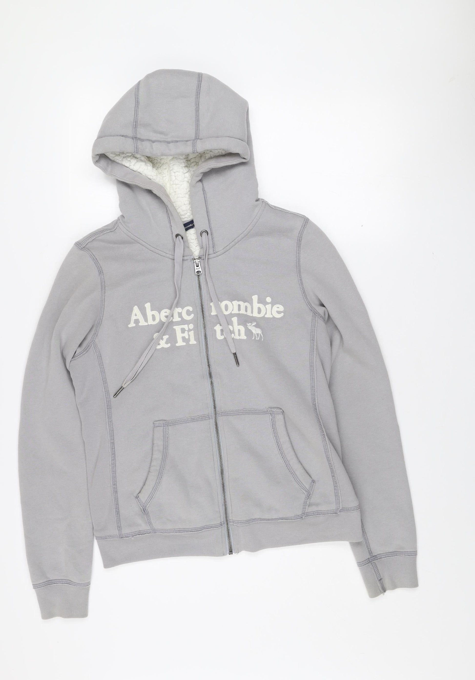 Abercrombie & Fitch Womens Grey Hooded Fleece Lined Zip Jacket S