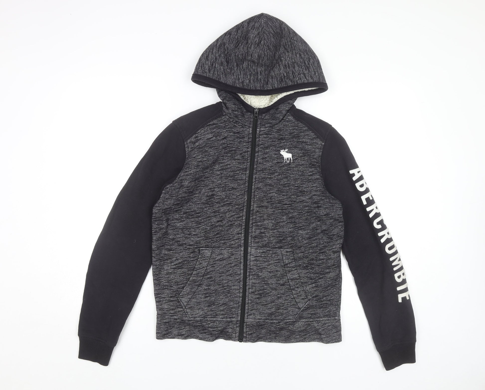 Abercrombie Kids Boys Black Grey Full Zip Hoodie 13-14 Years Logo Print