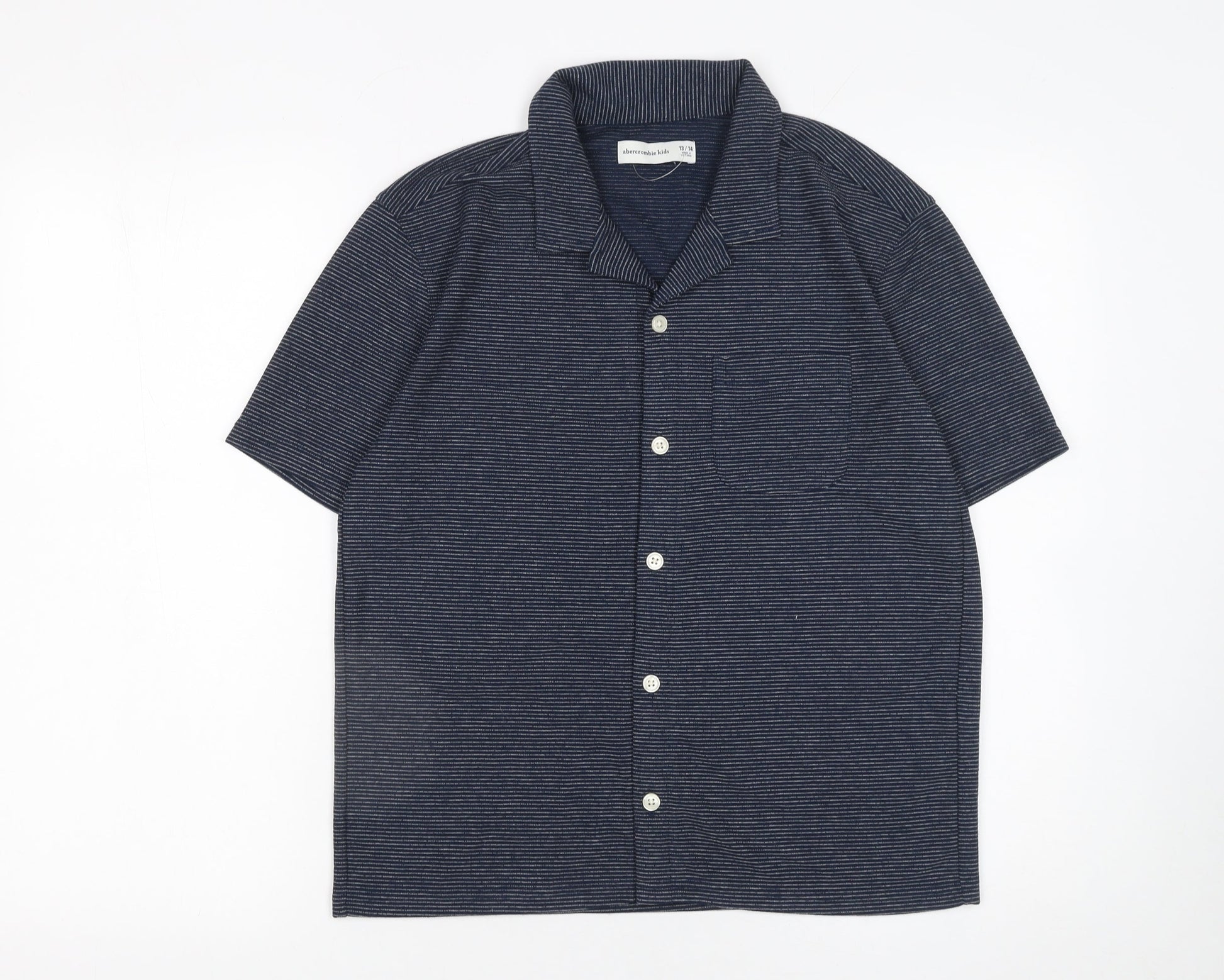 Abercrombie Kids Boys Blue Striped Short Sleeve Button-Up Shirt 13-14 Years