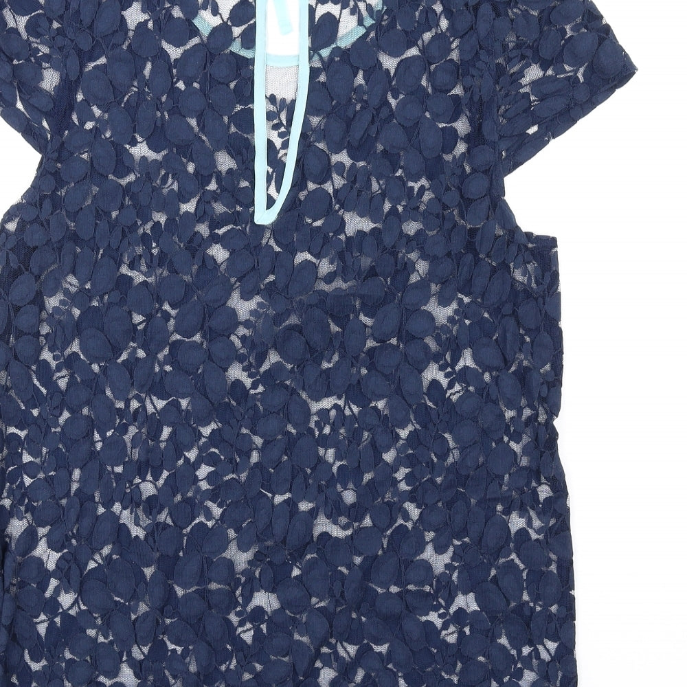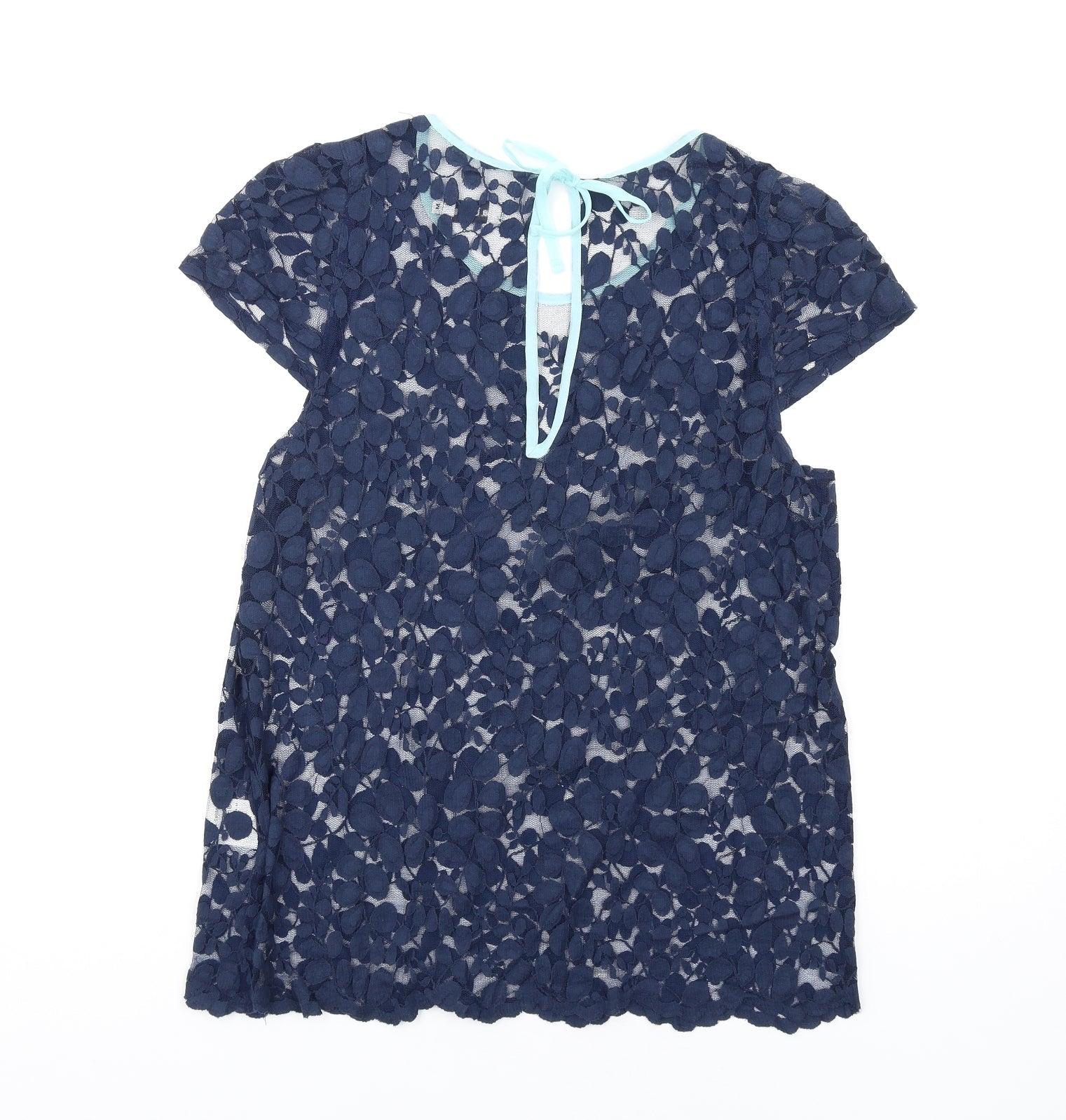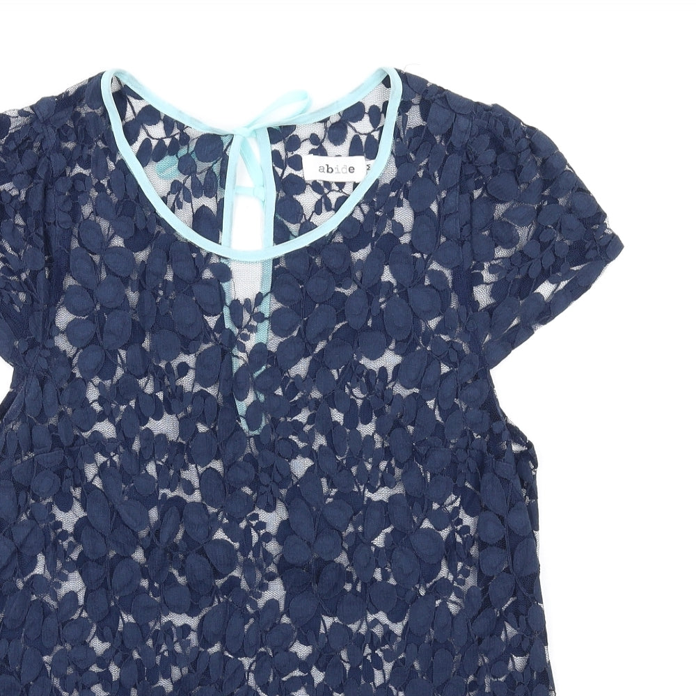 Abide Womens Blue Cotton Basic Blouse Size M Round Neck