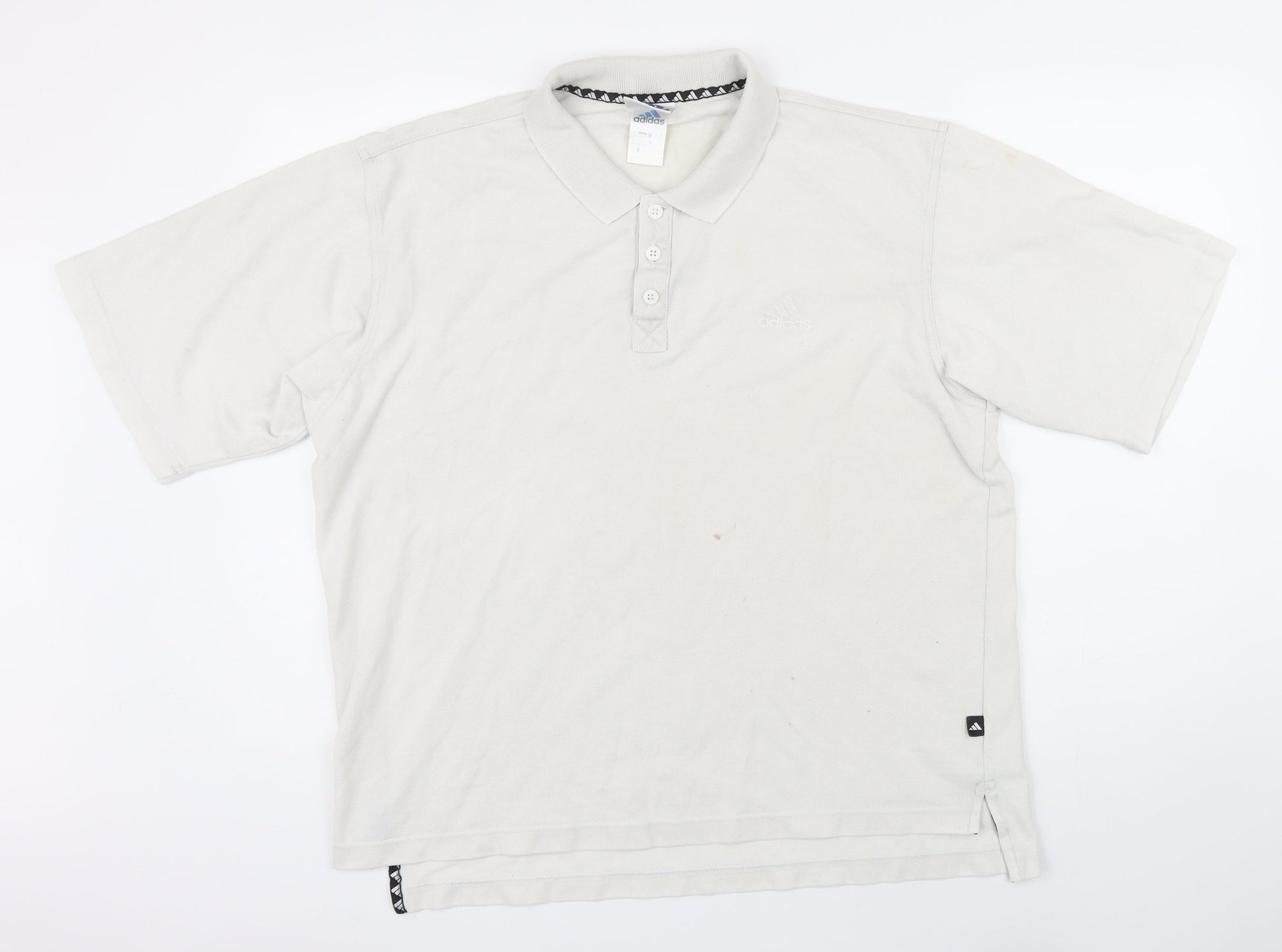 Addidas Mens Ivory Cotton Polo Size L Collared Button