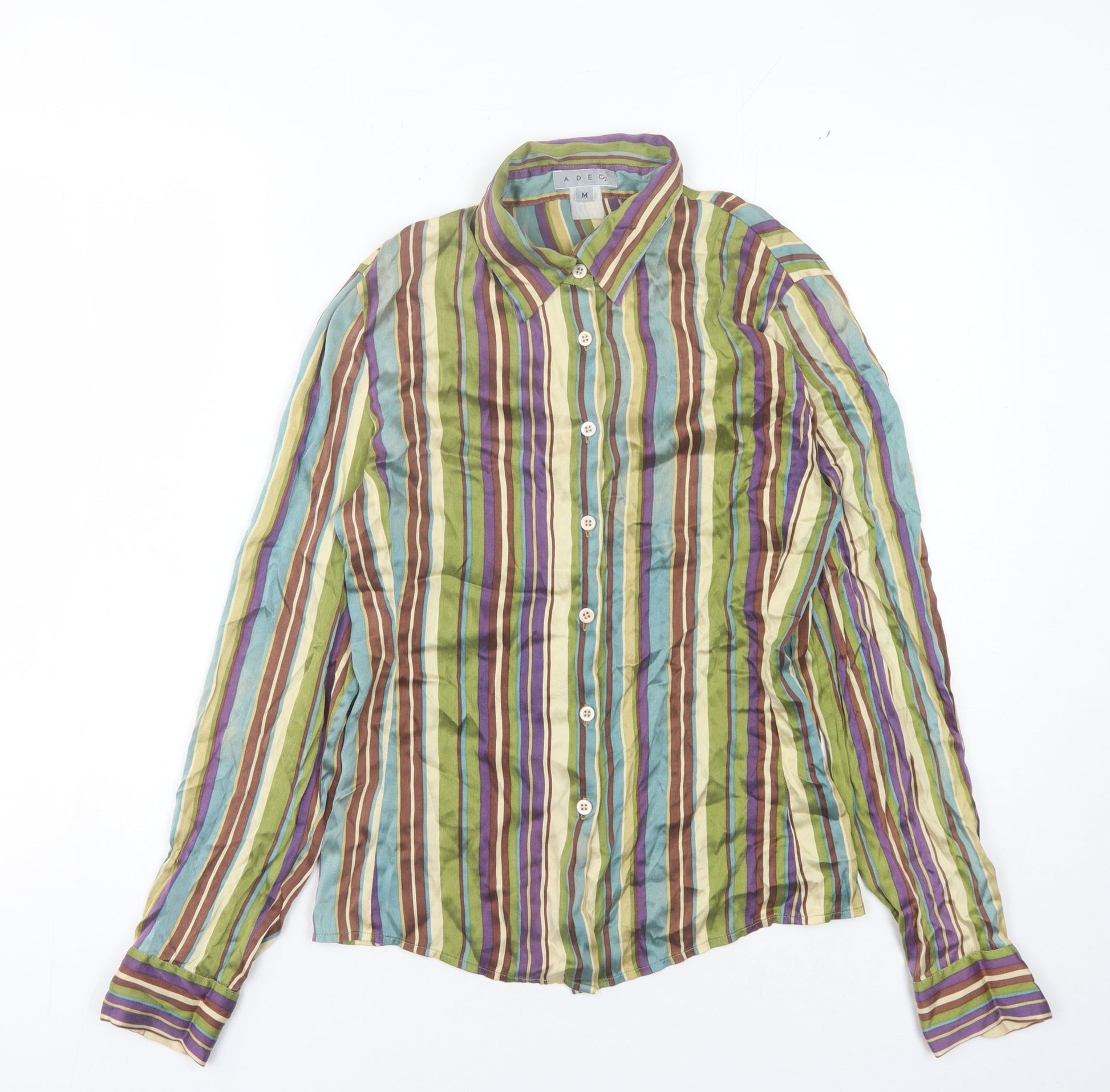 Adec Women's Multicoloured Striped Button-Up Shirt M