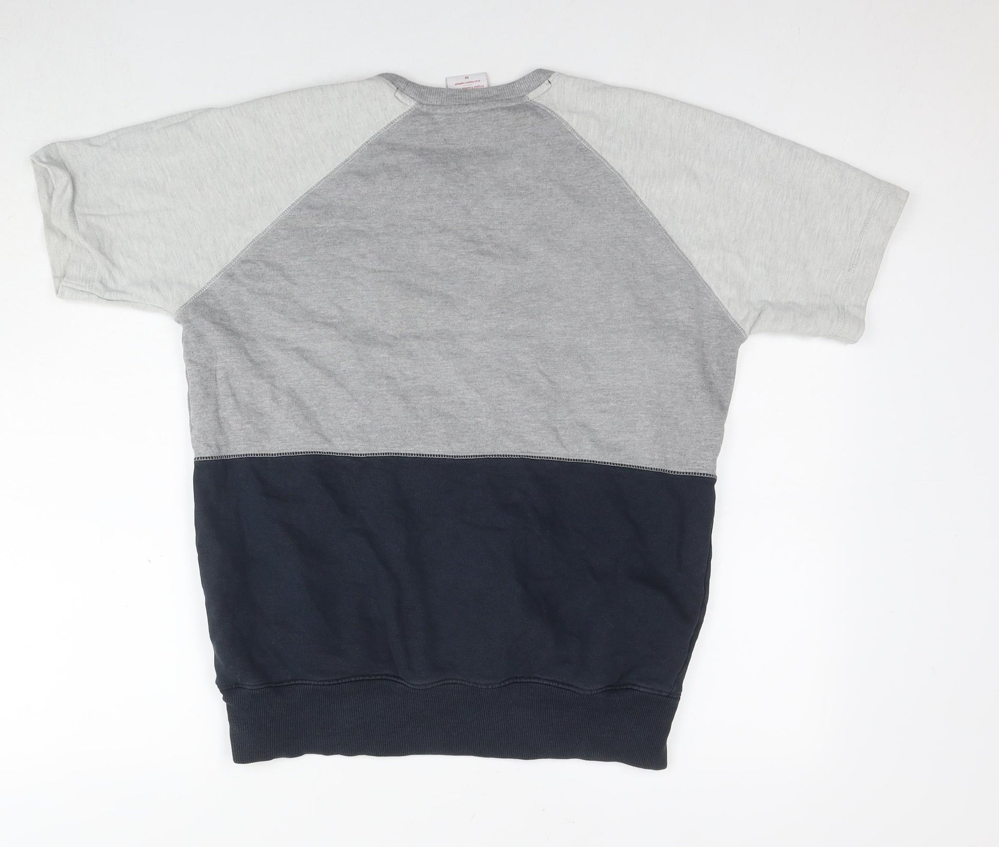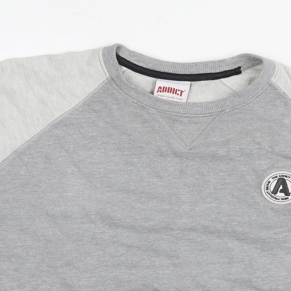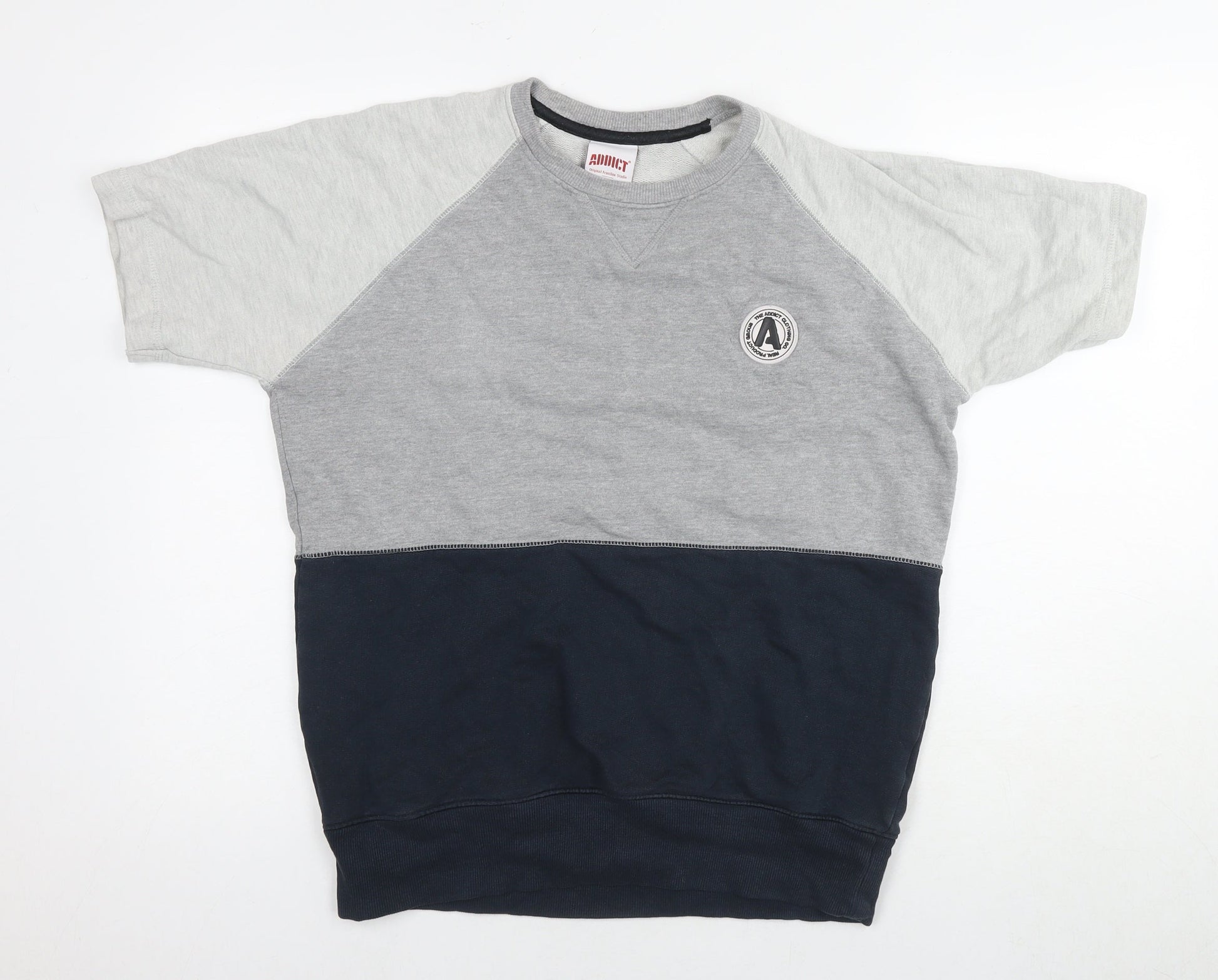 Adict Womens Grey Colourblock Cotton Basic T-Shirt Size M Round Neck