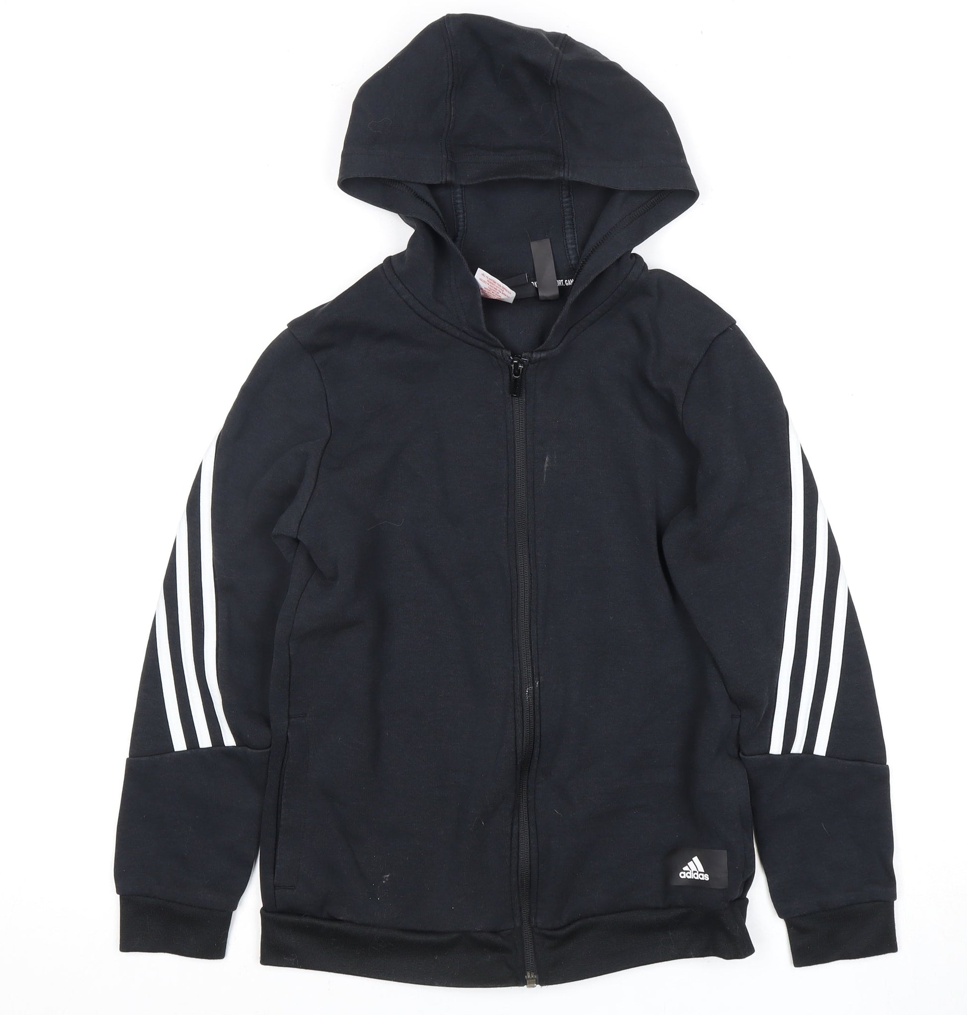 Adidas Black Boys Full Zip Hoodie, Size 11 Years, Casual Sports