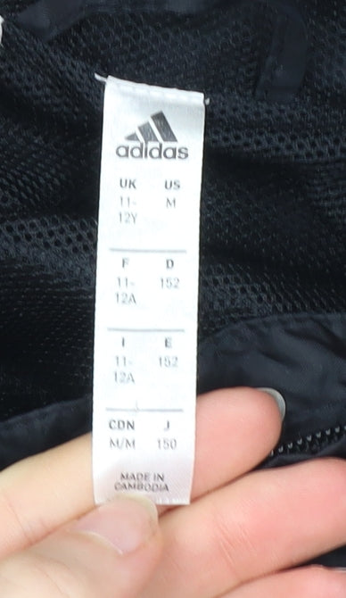 Adidas Boys Black 12 Years Windbreaker Jacket Hooded Sports Coat