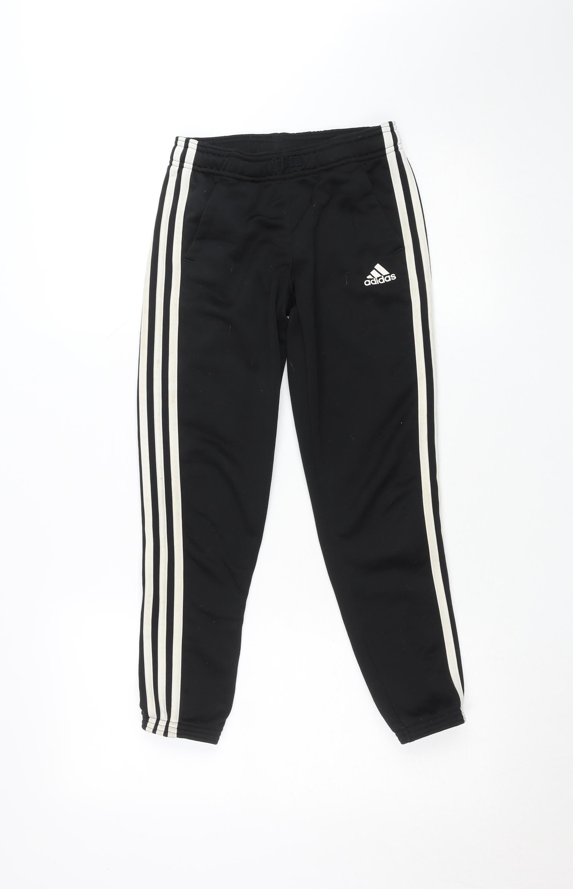 Adidas Boys Black 9-10 Years Track Pants with Side Stripes