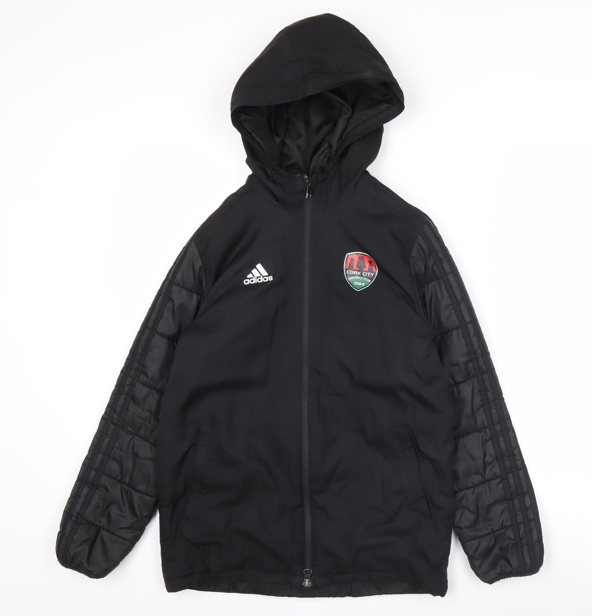 Adidas Boys Black 9-10Y Hooded Puffer Jacket Cork City FC Zip Coat