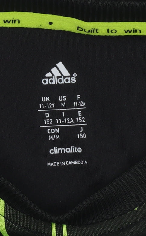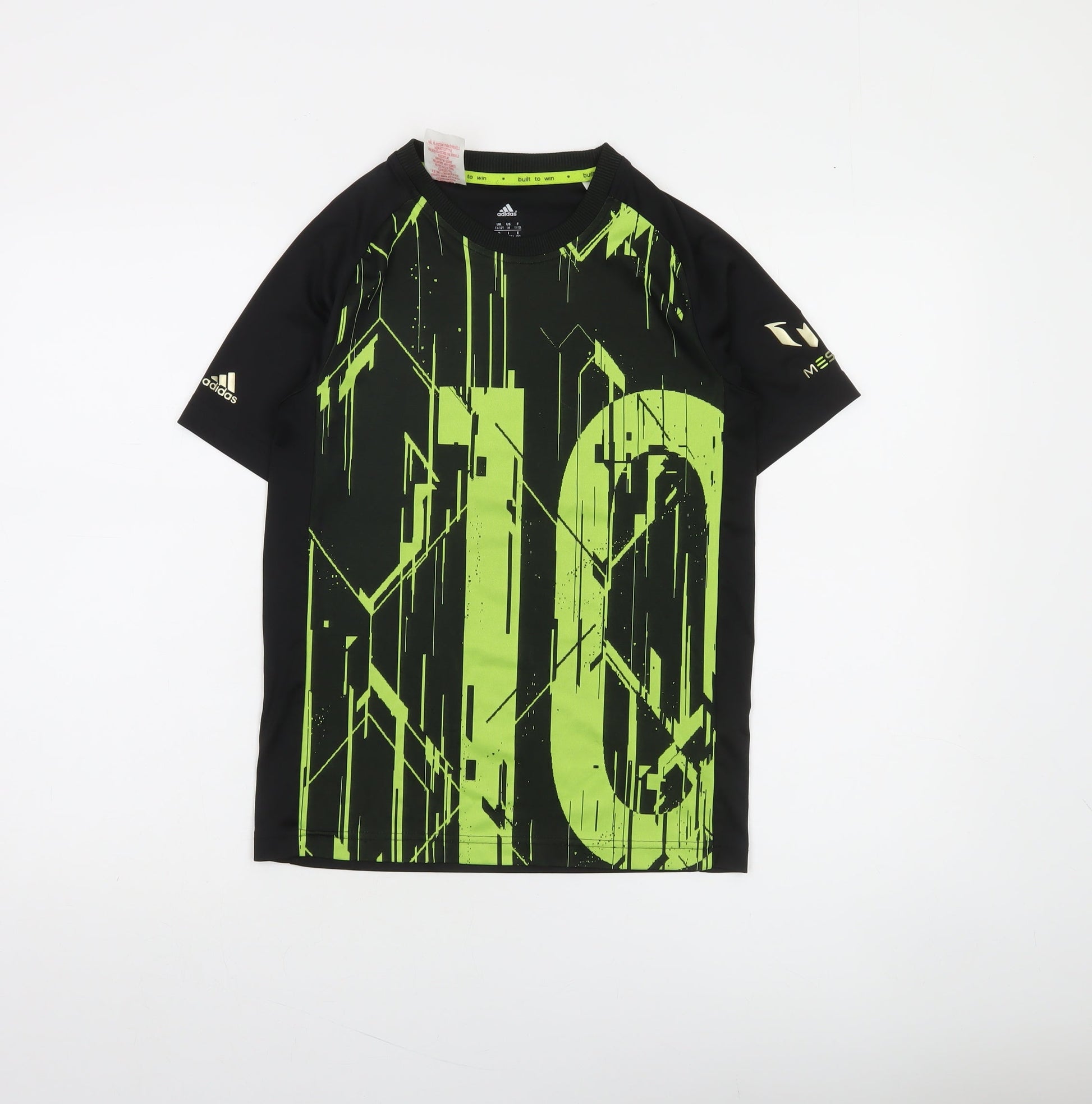 Adidas Boys Black & Green Messi Football T-Shirt Size 11-12 Years Climalite