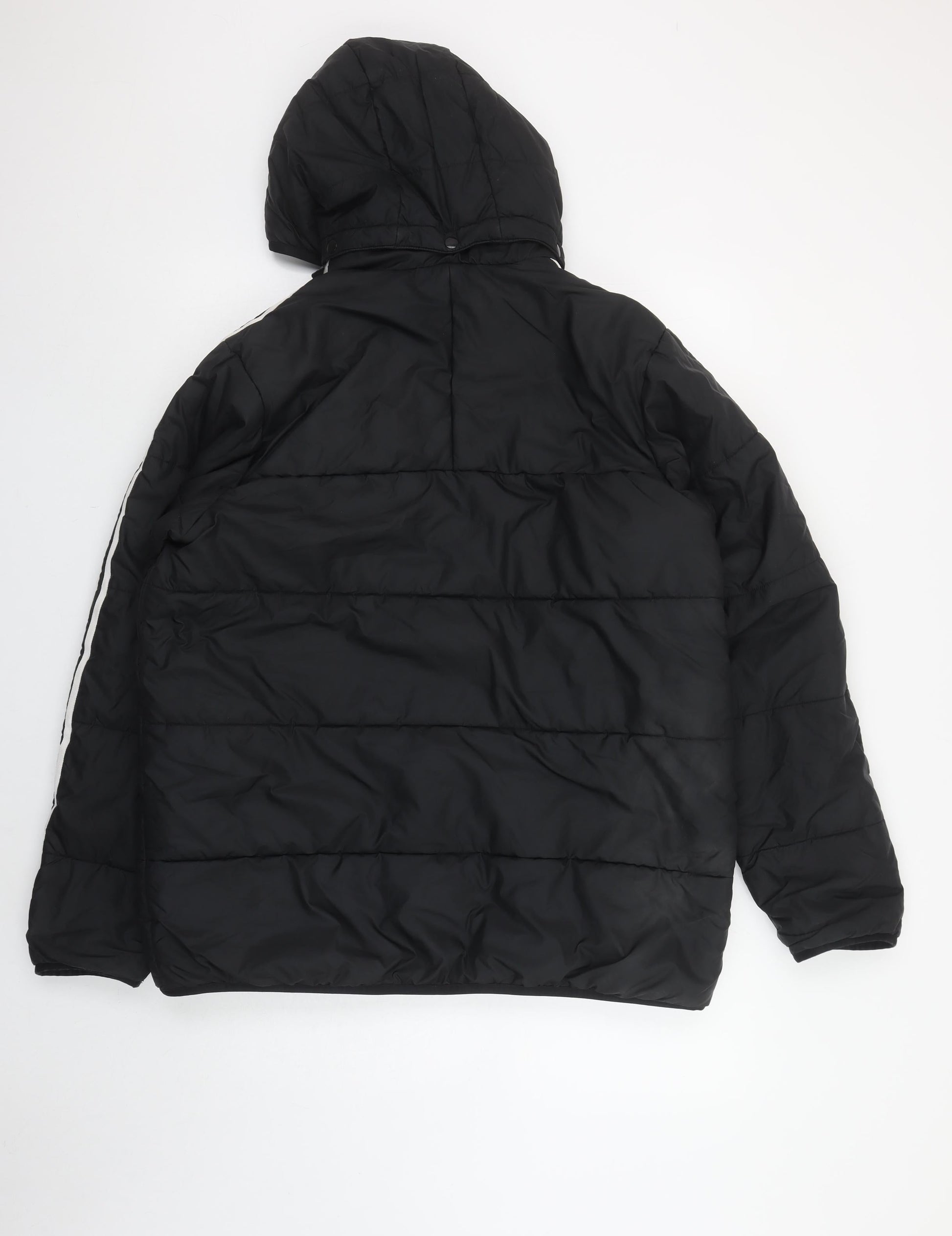 adidas Boys Black Hooded Puffer Jacket XL 16 Years Hooded Winter Coat
