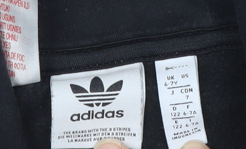 Adidas Boys Black Pullover Hoodie 6-7 Years Cotton Blend Logo Jumper