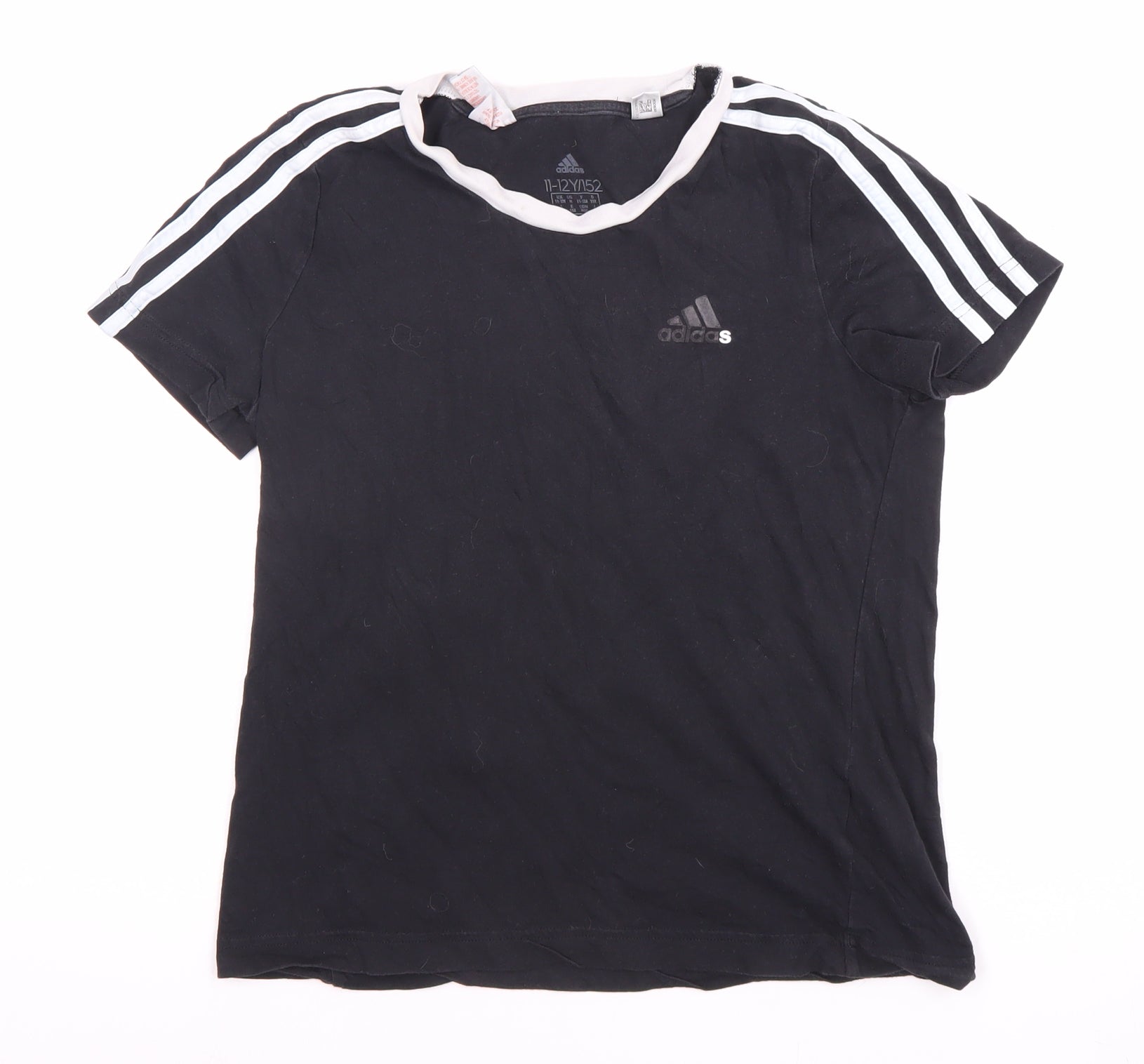 Adidas Boys' Black T-Shirt 11-12 Years, Short Sleeve, Cotton
