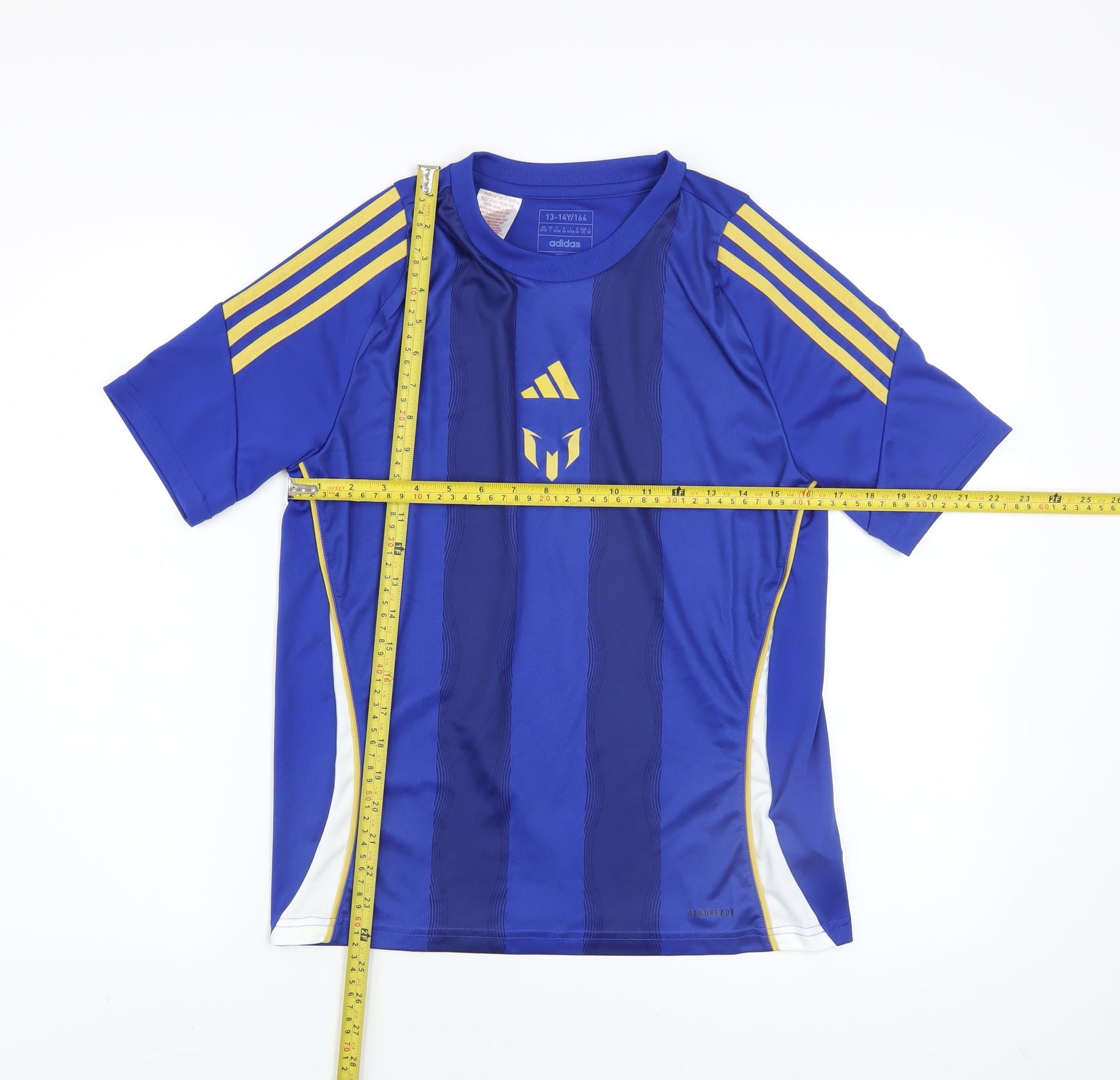 adidas Boys Blue Football Jersey T-Shirt 13-14 Years Lightweight Sports Top