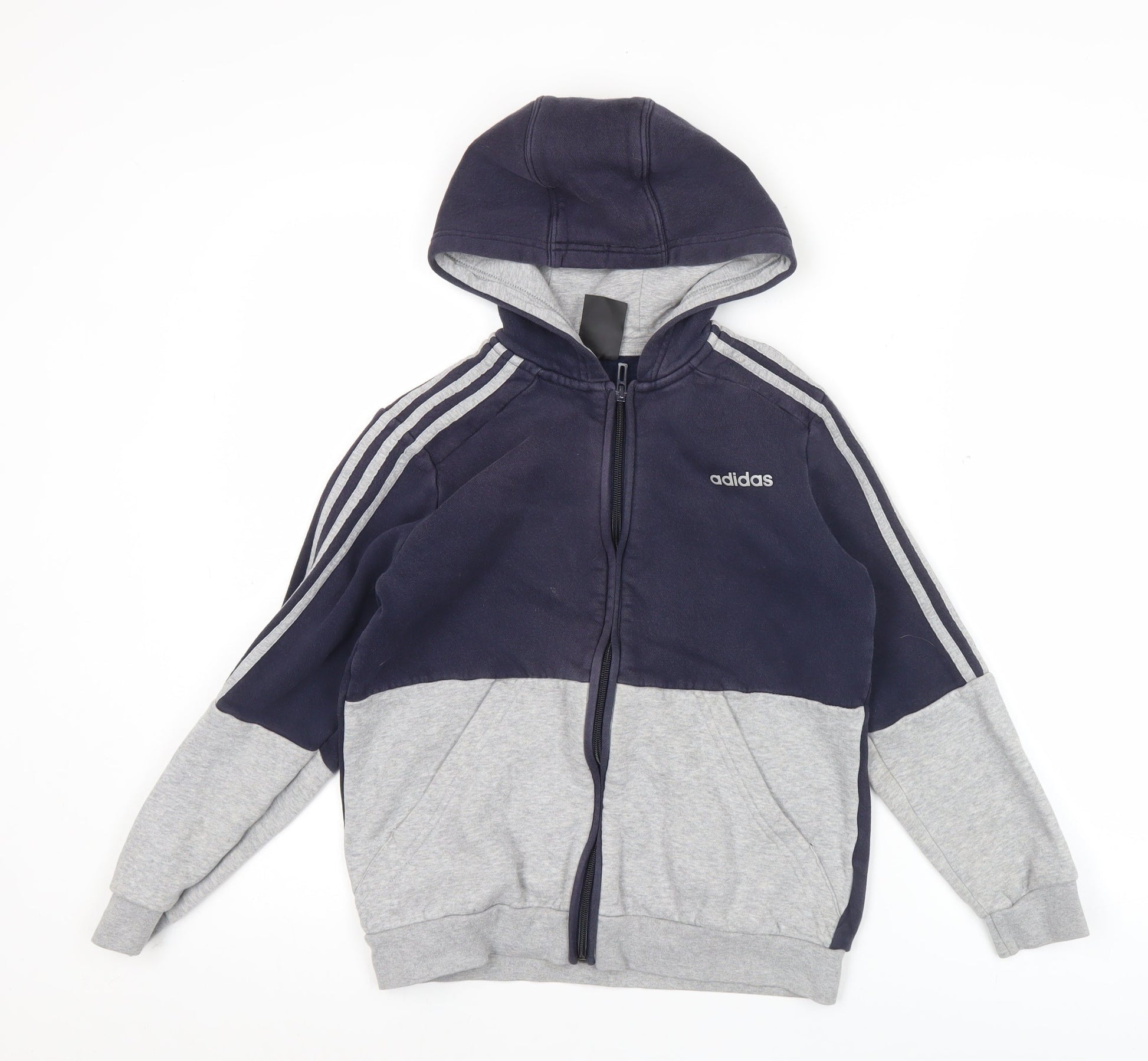 Adidas Boys Blue Grey Full Zip Hoodie 11-12Y Sports Logo Hooded Jacket