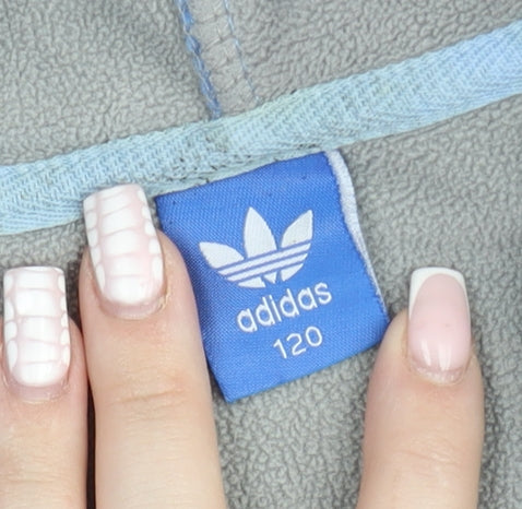 Adidas Boys Blue Hooded Full Zip Track Jacket 6-7 Years Fleece Lined