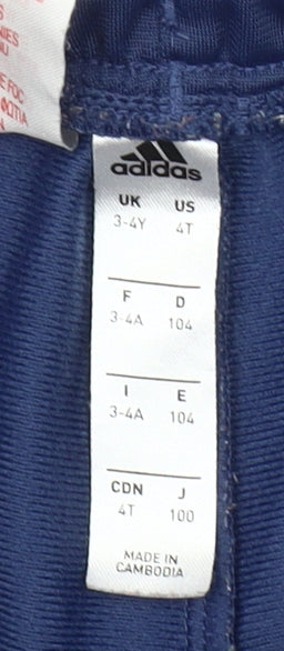 Adidas Boys Blue Jogger Trousers 3-4 Years Elastic Waist Sportswear