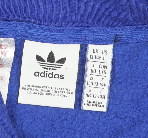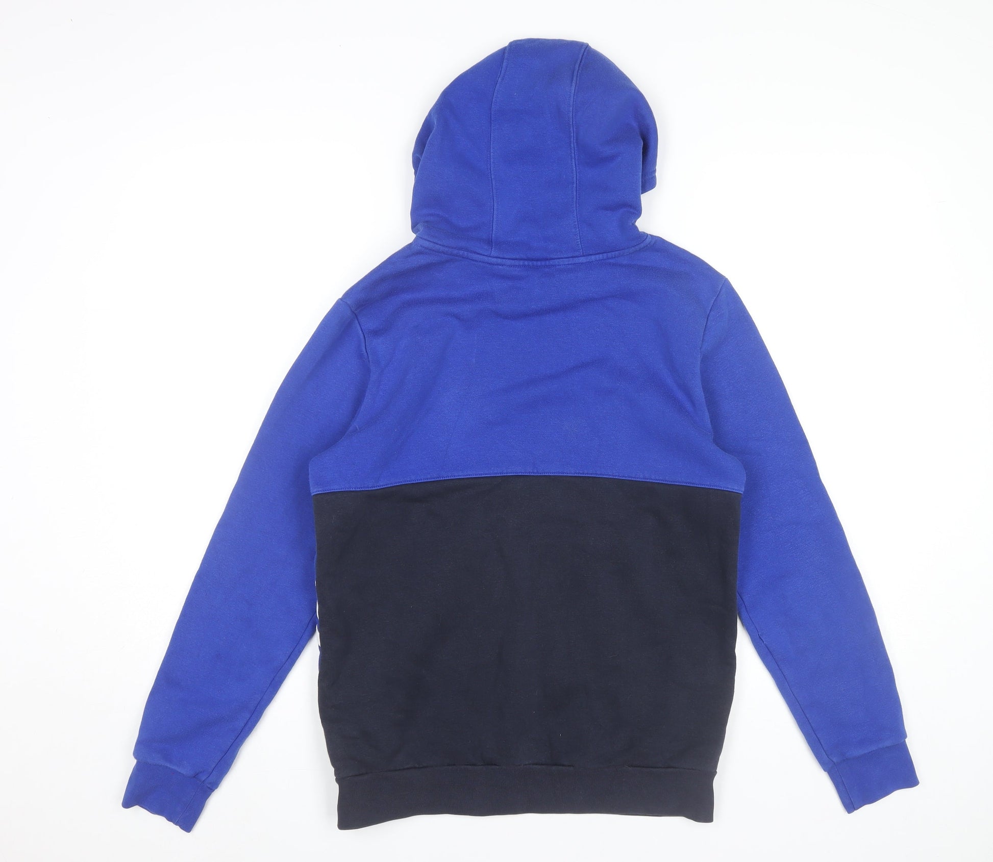 Adidas Boys Blue Pullover Hoodie 13-14 Years Logo Colourblock Hooded Top