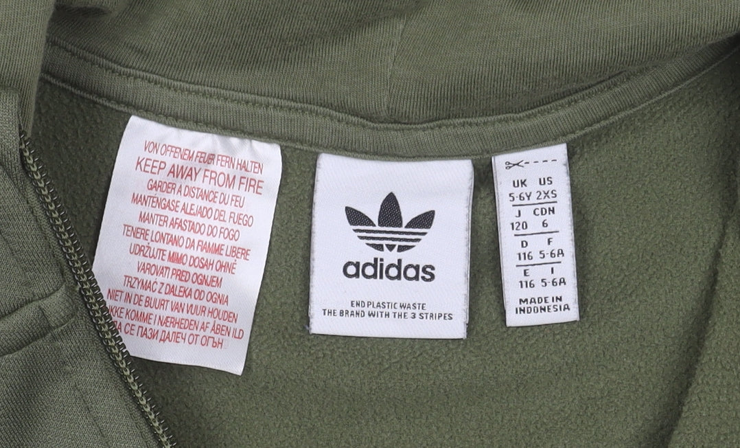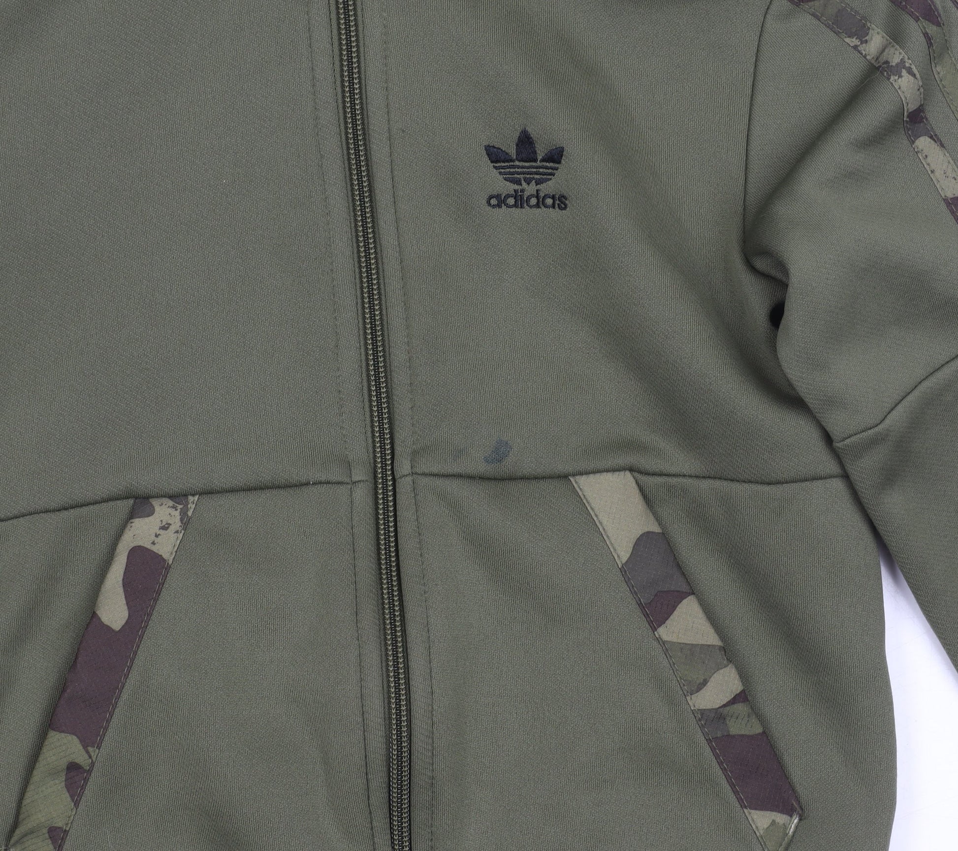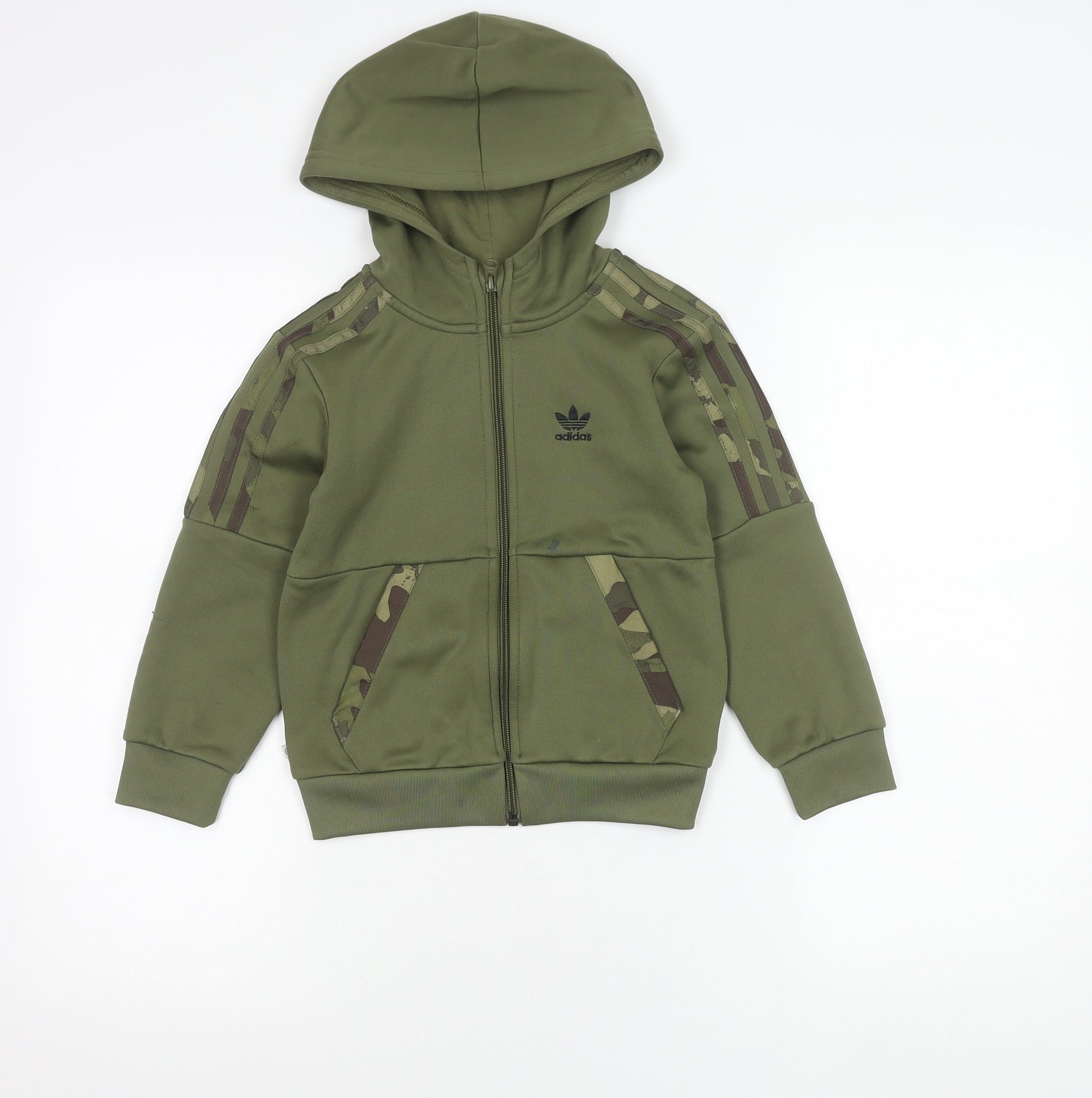 Adidas Boys Green Camouflage Full Zip Hoodie 5-6Y Logo Sportswear