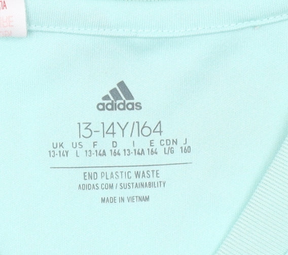 Adidas Boys Green Football Jersey T-Shirt 13-14 Years Short Sleeve