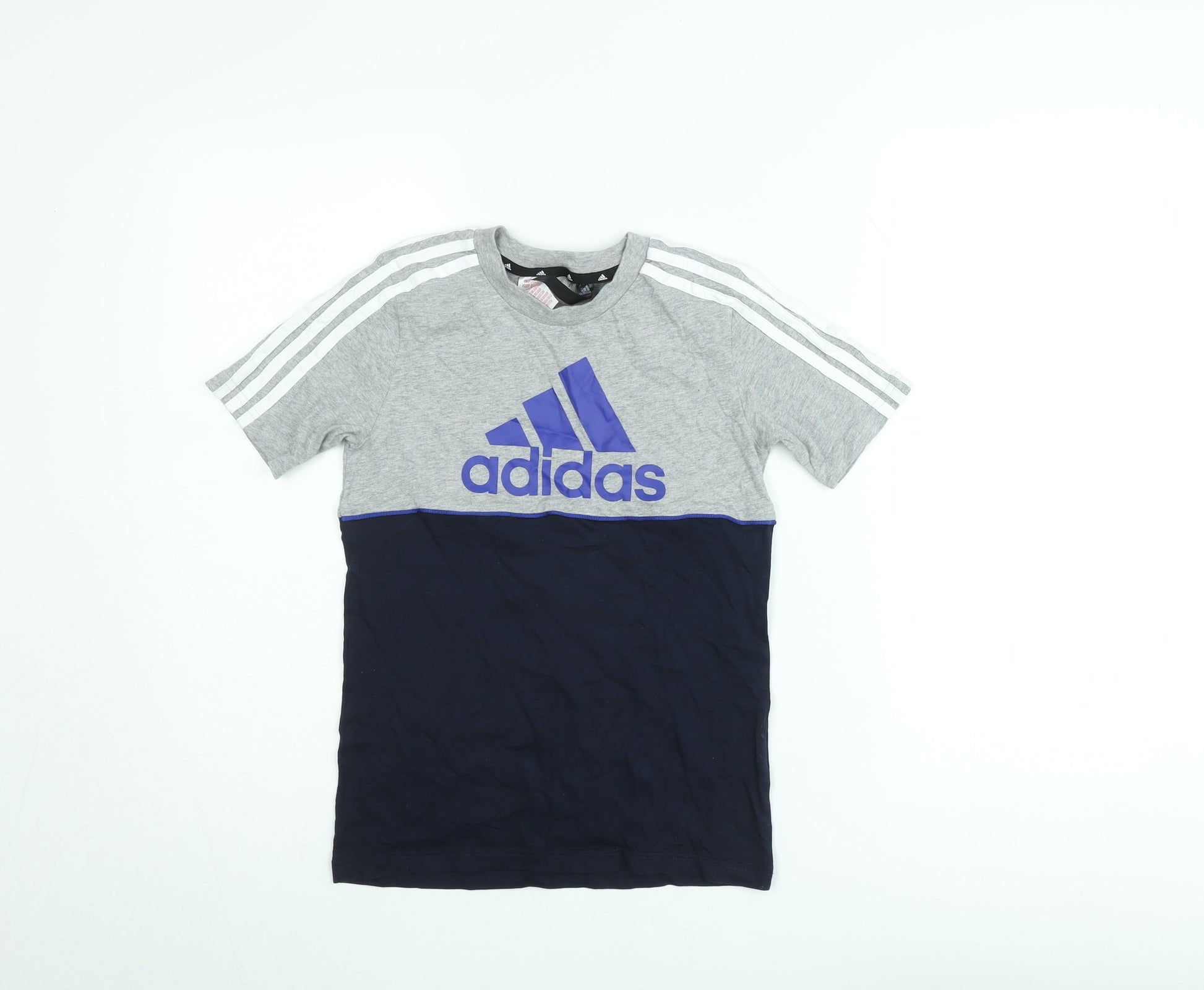 Adidas Boys Grey and Navy Logo Short Sleeve T-Shirt 9-10 Years