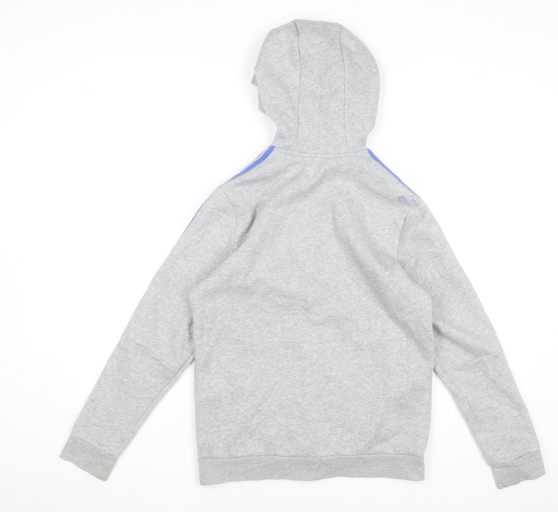 Adidas Boys Grey Full Zip Hoodie 13-14 Years Lined Cotton Blend