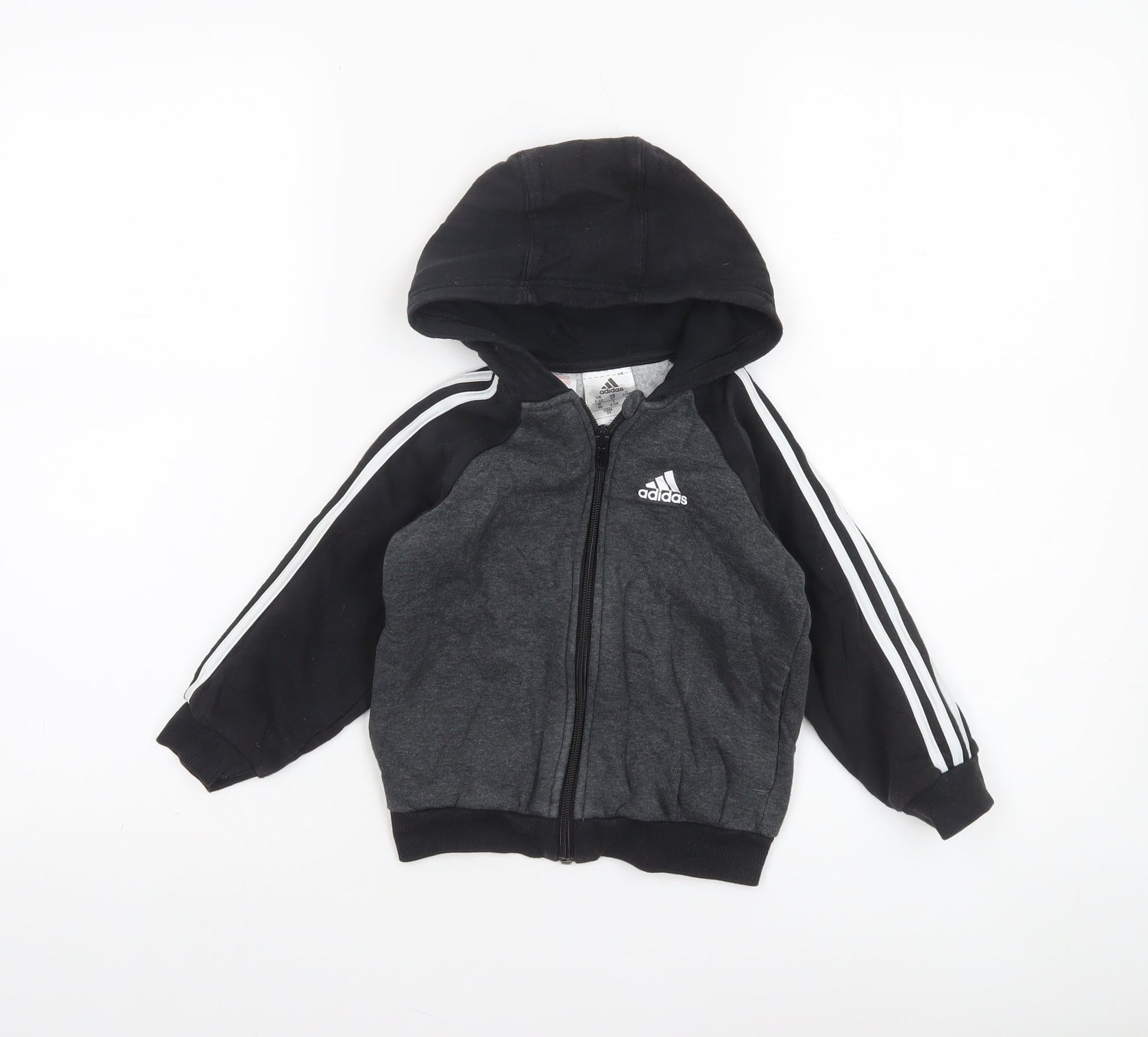 Adidas Boys Grey Full Zip Hoodie 2-3 Years Sports Hooded Sweatshirt